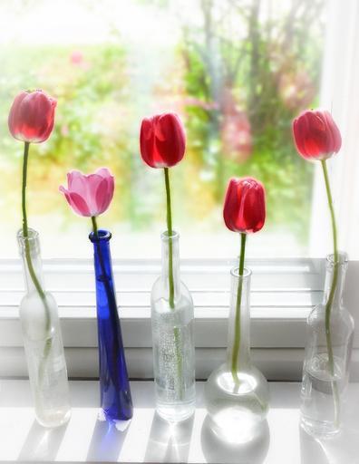Keywords: spring tulip a bottle of flower light window