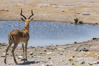 | Keywords: springbok animal lion water hole water hole africa national etosha namibia safari park game reserve wildlife hot waterhole wild desert natural drinking mammal conservation sky sunny adventure impala drive nature herd wilderness dusty drink scene |