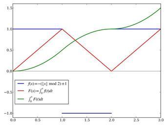 | Keywords: Square signal and its antiderivatives.svg en Square signal and its antiderivatives fr Un signal carré et ses primitives 2012-09-24 15 37 20 own Gapato Python scipy/numpy/matplotlib code from matplotlib pyplot import from numpy import from scipy integrate import cumtrapz def f x return x sin 1/x eps 1e-9 x0 linspace 0 1-eps 100 x1 linspace 1 2-eps 100 x2 linspace 2 3-eps 100 int_x0 1-2 mod modf x0 1 2 int_x1 1-2 mod modf x1 1 2 int_x2 1-2 mod modf x2 1 2 x hstack x0 x1 x2 int_x hstack int_x0 int_x1 int_x2 first_prim cumtrapz int_x x initial 0 second_prim cumtrapz first_prim x initial 0 plot x0 int_x0 color 'blue' lw 2 plot x1 int_x1 color 'blue' label r' f x - \lfloor x \rfloor\ \mathrm mod \ 2 + 1 ' lw 2 plot x2 int_x2 color 'blue' lw 2 plot x first_prim color 'red' label r' F x \int_0 x f t dt ' lw 2 plot x second_prim color 'green' label r' \int_0 x F t dt ' lw 2 ylim -1 1 1 6 axhline 0 color 'gray' legend loc 3 bbox_to_anchor 0 0 1 tight_layout show cc-zero Uploaded with UploadWizard Functions |