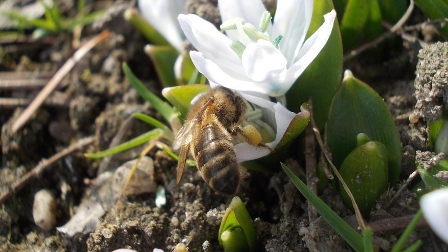 Keywords: squill white flower bee nectar collected spring
