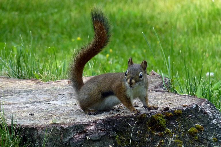 Keywords: squirrel animal nature rodent wildlife mammal wild tree stump stump furry brown grass outdoor outdoors