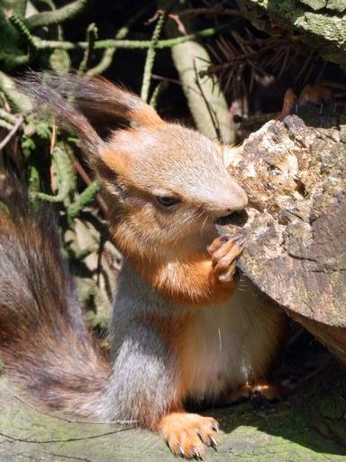 Keywords: squirrel sciurus rodent croissant animal animal world nager cute hair fur log brown grey