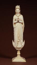 Keywords: Sri Lankan - Virgin of the Immaculate Conception - Walters 71341.jpg The Virgin's mantle falls in the elegant linear folds of Indian sculpture The native style and facial features are smoothly adapted to the Christian apocalyptic iconography of the Virgin who is represented standing on a crescent moon With little reference to the body beneath the robes her physical energy is directed into the peace and serenity of prayer Native and European vocabularies are in dialogue Christianity came with the Portuguese in 1505 Known to Europeans in the 17th century as Ceylon the island became officially known as Sri Lanka in 1972 ca 1690 1710 carved ivory with gilt and polychromy cm 25 7 accession number 71 341 8751 Don Marcello Massarenti Collection Rome 1897 catalogue vol II no 478 as a Florentine work of the 15th century Henry Walters city Baltimore Walters Art Museum Henry Walters Acquired by Henry Walters with the Massarenti Collection 1902 place of origin Ceylon in present-day Sri Lanka Walters Art Museum license Art of India in the Walters Art Museum Baroque sculpture in the Walters Art Museum Statues in Sri Lanka Media contributed by the Walters Art Museum needs category review |
