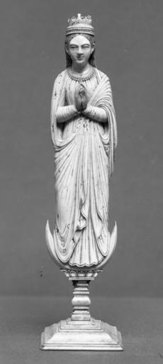 Keywords: Sri Lankan - Virgin of the Immaculate Conception - Walters 71341 (2).jpg The Virgin's mantle falls in the elegant linear folds of Indian sculpture The native style and facial features are smoothly adapted to the Christian apocalyptic iconography of the Virgin who is represented standing on a crescent moon With little reference to the body beneath the robes her physical energy is directed into the peace and serenity of prayer Native and European vocabularies are in dialogue Christianity came with the Portuguese in 1505 Known to Europeans in the 17th century as Ceylon the island became officially known as Sri Lanka in 1972 ca 1690 1710 carved ivory with gilt and polychromy cm 25 7 accession number 71 341 8751 Don Marcello Massarenti Collection Rome 1897 catalogue vol II no 478 as a Florentine work of the 15th century Henry Walters city Baltimore Walters Art Museum Henry Walters Acquired by Henry Walters with the Massarenti Collection 1902 place of origin Ceylon in present-day Sri Lanka <gallery> File Sri Lankan - Virgin of the Immaculate Conception - Walters 71341 jpg </gallery> Walters Art Museum license Art of India in the Walters Art Museum Baroque sculpture in the Walters Art Museum Statues in Sri Lanka Media contributed by the Walters Art Museum needs category review |