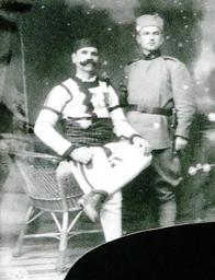 | Keywords: Srpski vojvoda Nikola.jpg mk С пскиот војвода икола снимен во ателјето на б а ата анаки во Битола со синот војник 1912/1913 оштетена плоча en Serbian voivode Nichola recorded in the studio of the brothers Manaki in Bitola with his son who is a soldier 1912/1913 Damaged glass plate DARM archive 1912-1913 The State Archives of the Republic of Macedonia DARM Bitola Department Creator Yanaki and Milton Manaki other versions Custom license marker 2016 10 18 PD-Macedonia Wikipedian in Residence at DARM Photographs by Manaki Brothers Serbian Chetnik Organization 1903-1918 Balkan Wars forces of Serbia |