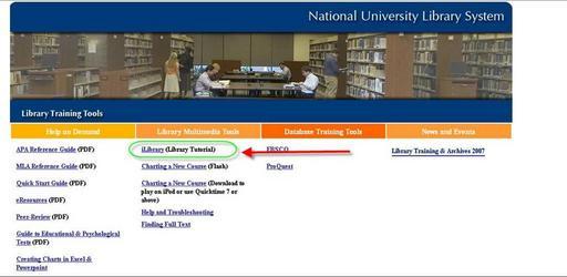 Keywords: Ss3NU.jpg en Screen shot of National University library page with annotation Own Jwindleharth 8/7/08 Screenshots Libraries in the United States