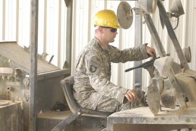 Keywords: SSA troops work behind scenes for Rakkasans DVIDS103932.jpg en Private 1st Class Joshua Biggs Co A 626th Brigade Support Battalion Supply Support Activity Platoon prepares to lift water onto a truck with a forklift at the SSA compound on Camp Striker July 16 2008-07-16 Spc Justin Snyder https //www dvidshub net/image/103932 103932 2008-07-18 09 31 CAMP STRIKER IQ PD-USGov Camp Striker Images from DoD uploaded by Fæ |