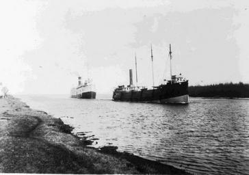 | Keywords: boats ships shipwrecks lake superior lakesuperior st. andrew standrew ontario canada history monochrome blackandwhite outdoor black and white Date: c. 1900 Description: The St. Andrew (right), a coal and grain boat, left Jackfish Bay for Port Arthur on 20 September 1900. Close to Porphyry Island, the vessel struck rocks. One of the crew managed to swim to the island and attach a rope to a tree, which allowed the remaining men to pull themselves hand-over-hand to the shore over the heavy sea. Accession No.: 981.39.186 Date: c. 1900 Description: The St. Andrew (right), a coal and grain boat, left Jackfish Bay for Port Arthur on 20 September 1900. Close to Porphyry Island, the vessel struck rocks. One of the crew managed to swim to the island and attach a rope to a tree, which allowed the remaining men to pull themselves hand-over-hand to the shore over the heavy sea. Accession No.: 981.39.186 |