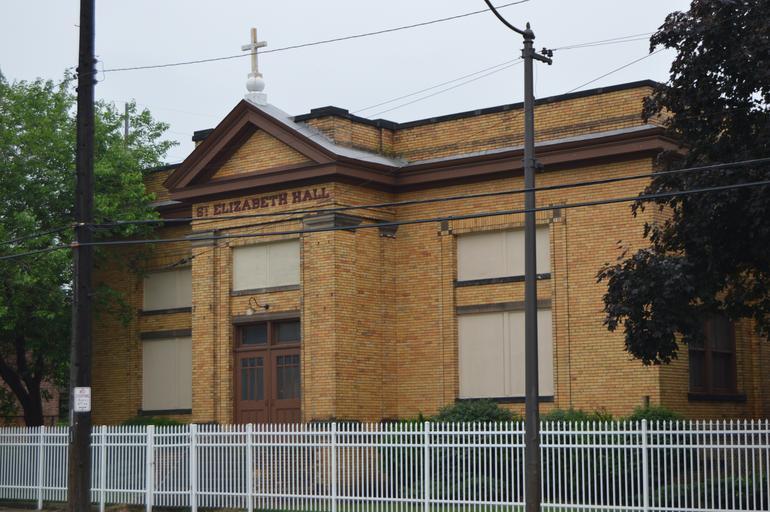 | Keywords: St Elizabeth of Hungary parish hall on Buckeye Road.jpg 41 29 6 N 81 37 22 W Front of St Elizabeth's parish hall located adjacent to w St Elizabeth of Hungary Catholic Church Cleveland Ohio St Elizabeth's Catholic Church at 9016 Buckeye Road in Cleveland Ohio Cleveland Ohio United States Before white flight and significant urban decay the church was the center of life for the heavily Hungarian neighborhood and the parish hall was the primary community center Own 2015-06-13 User Nyttend Nyttend No<nowiki></nowiki>ne Brick buildings in Ohio Buildings in Cleveland Ohio Church halls in Ohio Community centers in Ohio Hungarians in Ohio Neoclassical architecture in Ohio Building-centered pictures by User Nyttend Kinsman Cleveland |