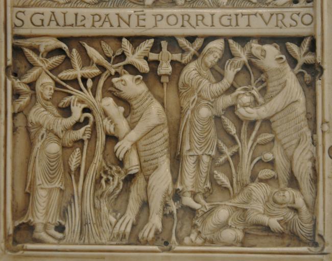 | Keywords: St Gallen Tuotilotafeln Kopie img05.jpg St Gallen Lapidarium Ausstellung Die Kultur der Abtei St Gallen Kopie der Tuotilotafeln vom Evangelium longum Cod Sang 53 Detail Der Bär hilft Gallus beim Bau seiner Zelle und Gallus reicht dem Bären ein Brot own 2013-06 Photo WolfD59 Sculptures in Lapidarium St Gallen Reliefs in St Gallen Wikipedia Bodensee 10 St Gallen Codex Sangallensis 53 Reliefs of Saint Gall Reliefs of bears 890s works Breads in art | ||||