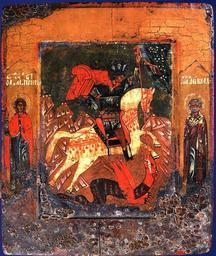 | Keywords: St. George with Paraskeva and Saint Nicholas XVII.jpeg ru Чудо святого Гео гия о змие с Па аскевой пятницей и иколой Чудотво цем на полях 17 век Русский Севе Де ево левкас темпе а 29 3х24 6 см Иконог афическая особенность - п и наличии венца над головой Гео гия отсутствует изоб ажение ангела несущего венец имб Гео гия не был изоб ажен; иконописец лишь наметил его левый к ай конту ом плаща святого Гео гий де жит копье в левой уке повод - в п авой century 17 http //www bibliotekar ru/rusIcon/31 htm 17 PD-Art-100 Icons of Saint George and the Dragon 1600 Uploaded with UploadWizard Icons of Russian North Icons with saints on the margins Damaged icons |