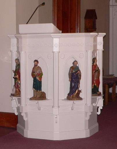 | Keywords: St. Helena Immaculate Conception pulpit.JPG St Helena Nebraska The Gothic Revival church was built in 1897 With the 1919 rectory it is listed in the National Register of Historic Places own Ammodramus 2010-11-01 Cc-zero Pictures by Ammodramus Taken with Panasonic Lumix DMC-FZ20 Immaculate Conception church St Helena Nebraska Pulpits in the United States |