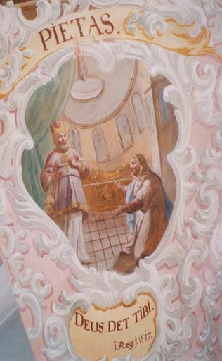 | Keywords: St. Leonhard (Inchenhofen) 15.jpg St Leonhard Inchenhofen Fresko “ 7 Gaben des Heiligen Geistes “ Spiritus pietatis Geist der Frömmigkeit “ Motiv Hanna bittet Gott um einen männlichen Nachkommen Der Priester Eli verspricht ihr dass Gott ihr die Bitte erfĂĽllen wird 1 Sam 1 17 self-photographed 2004 Creator Ignaz Baldauf photographed by Hermetiker Licensed-PD-Art PD-old-100 cc-by-sa Hermetiker Frescos of St Leonhard Inchenhofen | ||||