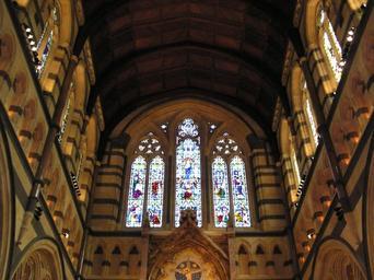 Keywords: St. Paul's Cathedral Interior (Marble Wall & Stained Glass).jpg 2008-01-19 own assumed Donaldytong St Paul's Cathedral Melbourne