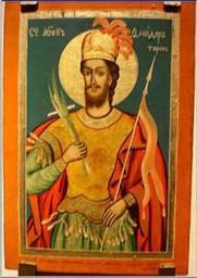 | Keywords: St Theodor Tiron Murgash 1842 Kostadin Veles.jpg be Икона на Свeти Теодо Ти он от 1842 година Дело на зог аф Хаджи Костадин цъ ква Св Па аскева - с у гаш Днес в гале ията на икони Цъ ква Св икола Куманово http //www cdnh edu mk/multimedija2006/Kumanovo_Sv_Nikola/Kumanovo_Sv_Nikola/s_Murgash htm Kostadin 1842 PD-old St Paraskeva Church Murgaš Icons of the Republic of Macedonia Kumanovo Icon Gallery | ||||