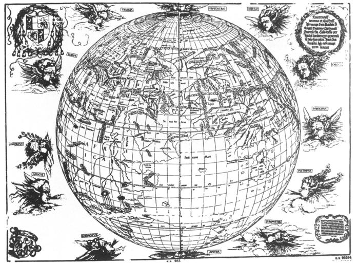 | Keywords: Stabius-Durer world map.jpg  en Johann Stabius's 1515 world map whose engraving is credited to Albrecht Dürer A planisphere globe surrounded by the twelve winds equivalent to Ptolemy's third projection The arms of Matthäus Cardinal Lang von Wellenburg archbishop of Salzburg at upper left; the arms of Johann Stabius imperial astrologer at lower left Dedication to Cardinal Lang at upper right; imperial privilege and date at lower right As no 16th-century copies are known to survive and the image lacks the subtitle of Adam von Bartsch 1757-1821 's 1781 reprint it is presumably from Carl Ritter 1779-1859 's 1847 edition la Reverendiss domino et illustriss Principi Dño Matheo T Angeli Diacono Cardinali Gurceñ Sa Caẽs Mtis per Italia locũtenenti generali vdño suo colen Joañ Stabius Au hãc orb imaginem dedicat Imp Caes niuus Maximilianus P F Aug Privilegio caiut nequis Libros membraenas cartas pictu'as volumĩa vel quecuqe alia que Ioan Stabius Au sub suo titulo nomie emiserit sine sua expressa voluntate In decem annis a die editioĩs sequentibus imprimat sub pena amissionis rerum impressarum decem mâcharum auri puri 1 5 1 5 1847 https //thonyc wordpress com/2015/09/23/reaching-for-the-stars/ The Renaissance Mathematicus credited to http //www astronomie-nuernberg de/personen/Duerer_Weltkarte asp Astronomie in Nürnberg Johann Stabius after Ptolemy al other versions <gallery> File Stabius map of the world jpg Stabius map of the world II jpg </gallery> PD-old-70-1923 PD-100 1840s maps of the world 1847 maps Maps in Latin Carl Ritter Stabius world map 1847 |