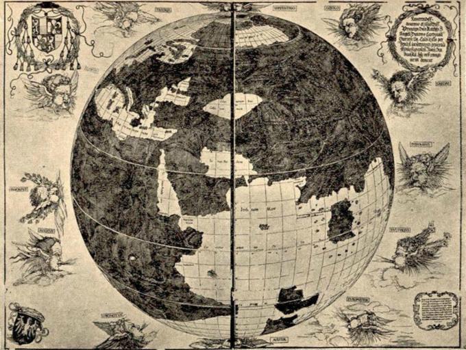 | Keywords: Stabius world map silhouette.png  en Johann Stabius's 1515 world map whose engraving is credited to Albrecht Dürer A planisphere globe surrounded by the twelve winds equivalent to Ptolemy's third projection The arms of Matthäus Cardinal Lang von Wellenburg archbishop of Salzburg at upper left; the arms of Johann Stabius imperial astrologer at lower left Dedication to Cardinal Lang at upper right; imperial privilege and date at lower right la Reverendiss domino et illustriss Principi Dño Matheo T Angeli Diacono Cardinali Gurceñ Sa Caẽs Mtis per Italia locũtenenti generali vdño suo colen Joañ Stabius Au hãc orb imaginem dedicat Imp Caes niuus Maximilianus P F Aug Privilegio caiut nequis Libros membraenas cartas pictu'as volumĩa vel quecuqe alia que Ioan Stabius Au sub suo titulo nomie emiserit sine sua expressa voluntate In decem annis a die editioĩs sequentibus imprimat sub pena amissionis rerum impressarum decem mâcharum auri puri 1 5 1 5 or 1781 1847 https //steyrerpioniere wordpress com/2012/02/22/johannes-stabius/1500-johannes-stabius-steinbock5/ main Steyrer Pioniere credited to the Austrian National Library Österr Nationalbibliothek Johann Stabius after Ptolemy c other versions PD-old-70-1923 Stabius world map 1781c Maps in Latin |