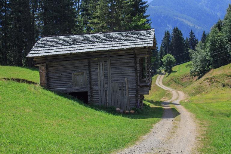 Keywords: stadl away landscape nature meadow field trail alpine summer green fields grass lane rural agriculture pasture livestock agricultural nutzweg idyll hut log cabin mountain hut idyllic mountains wood rustic barn