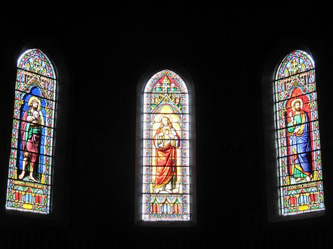 | Keywords: Stained glass windows of the choir of the church John the Baptist (Mauleon).jpg en Stained glass windows of the choir of the church John the Baptist in Mauléon-Licharre Pyrénées-Atlantiques France From left to right Saint John the Baptist Sacred Heart of Jesus Saint Peter fr Vitraux du choeur de l'église Saint-Jean-Baptiste à Mauléon-Licharre Pyrénées-Atlantiques De gauche à droite Saint-Jean-Baptiste le Sacré-Coeur de Jésus Saint-Pierre own Tangopaso 2012-01-28 43 221252 -0 889324 region FR_heading NNE Stained glass windows in Pyrénées-Atlantiques Mauleon Église Saint-Jean-Baptiste de Mauléon Saint John the Baptist on stained glass windows Mauleon Stained glass windows of Sacred Heart of Jesus Christ and the Immaculate Heart of Mary Mauleon Saint Peter on stained glass windows Mauleon |