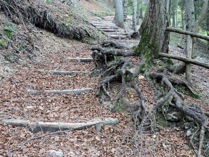 Keywords: staircase forest roots wood steps autumn leaves mountain scale ascent tree