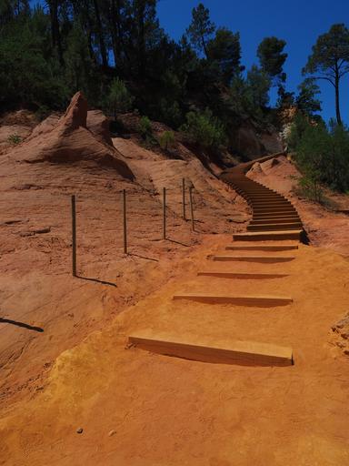 | Keywords: stairs gradually nature park rise emergence ocher rocks ocher ocher quarry rock color bright colorful orange red yellow nature trail ocher trail roussillon places of interest luberon massif france vaucluse ocher mine provence ochre colours red ocher ockerbraun ocher mining earth color brown ironstone clay mineral department of vaucluse provence-alpes-côte d'azur arrondissement apt canton apt nature park luberon apt gordes chaussee of geants falaises de sang mixture hue | ||||