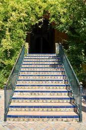| Keywords: stairs input gradually emergence architecture building staircase rise stone stairs entrance door arched door railing treppengeländer uncertain dark despair fear unknown darkness tiles stone tiles tile iron railings climber nature overgrown green leaves bush hops stair step light |