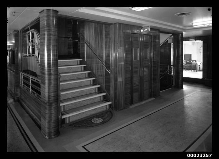 | Keywords: awatea tss awatea tssawatea samuel j hood studio collection samueljhoodstudiocollection hood collection hoodcollection union steamship company unionsteamshipcompany new zealand newzealand merchant vessel merchantvessel luxury liner luxuryliner ship interior shipinterior blackandwhite monochrome photo border black and white View of stairs and lift of TSS AWATEA. AWATEA, built in 1936, was owned by Union Steamship Company and was known as the 'Queen of the Tasman Sea'. It was a luxury liner that serviced the trans-Tasman route. AWATEA was requisitioned by the British Government during World War II and was sunk in 1942. This photo is part of the Australian National Maritime Museum’s Samuel J. Hood Studio collection. Sam Hood (1872-1953) was a Sydney photographer with a passion for ships. His 60-year career spanned the romantic age of sail and two world wars. The photos in the collection were taken mainly in Sydney and Newcastle during the first half of the 20th century. The ANMM undertakes research and accepts public comments that enhance the information we hold about images in our collection. This record has been updated accordingly. Photographer: Samuel J. Hood Studio Collection Object no. 00023257 View of stairs and lift of TSS AWATEA. AWATEA, built in 1936, was owned by Union Steamship Company and was known as the 'Queen of the Tasman Sea'. It was a luxury liner that serviced the trans-Tasman route. AWATEA was requisitioned by the British Government during World War II and was sunk in 1942. This photo is part of the Australian National Maritime Museum’s Samuel J. Hood Studio collection. Sam Hood (1872-1953) was a Sydney photographer with a passion for ships. His 60-year career spanned the romantic age of sail and two world wars. The photos in the collection were taken mainly in Sydney and Newcastle during the first half of the 20th century. The ANMM undertakes research and accepts public comments that enhance the information we hold about images in our collection. This record has been updated accordingly. Photographer: Samuel J. Hood Studio Collection Object no. 00023257 |