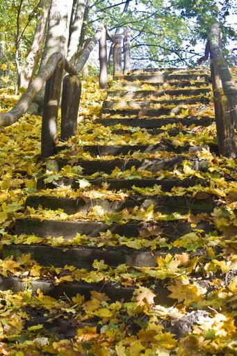 Keywords: stairs way high upward emerge leaves maple book october autumn golden golden autumn leaf fall