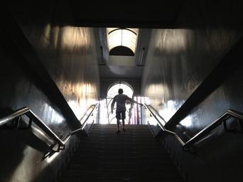 Keywords: stairway stair up man male silhoutte light step architecture