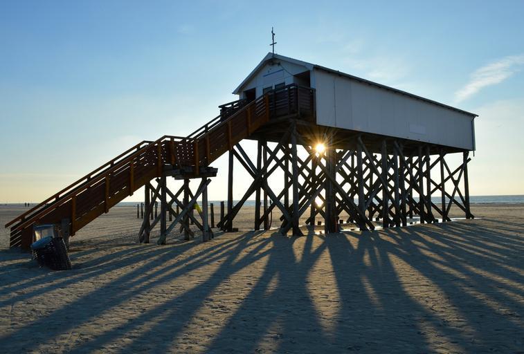 Keywords: stalk north sea beach sun shadow stilt house stilt houses evening