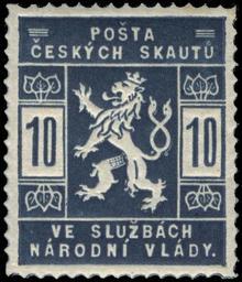 Keywords: StampCzechoslovakiaSkout1918MichelI.jpg ru Почтовая ма ка скаутской почты в П аге personal collection Josef Rössler-Ořovský 1869 1933 PD-old Stamps of Czechoslovakia