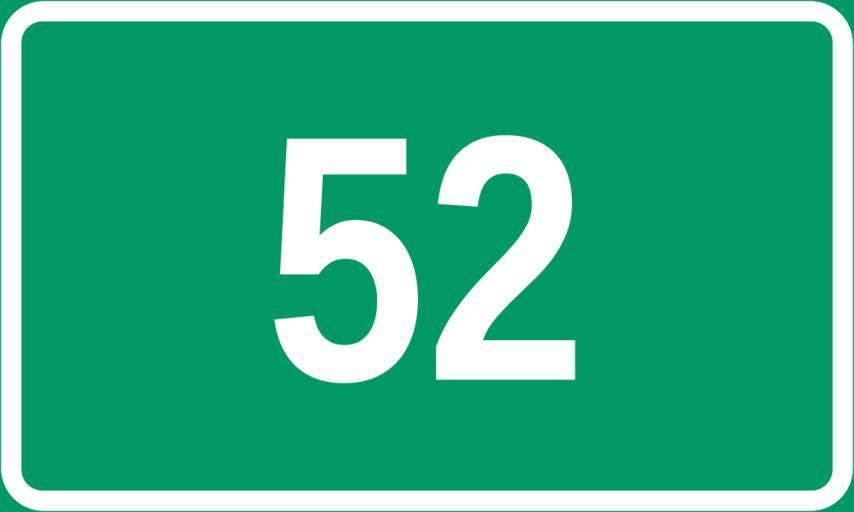 Keywords: Stamvei 52.svg en Diagram of norwegian trunk road sign Own work by uploader based on File Tabliczka E svg BjørnN 2009-02-19 Diagrams of route signs of Norway 052 52 number