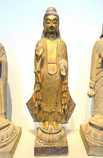 Keywords: Standing Buddha, China, Shanxi province, Eastern Wei dynasty, 534-550 AD, sandstone, pigments - Östasiatiska museet, Stockholm - DSC09278.JPG en Exhibit in the Östasiatiska museet Stockholm Sweden This artwork is old enough so that it is in the public domain Photography was permitted in the museum without restriction 2014-09-13 05 52 10 own Daderot other versions cc-zero Sculpture of China in Östasiatiska museet Uploaded with UploadWizard Statues of the Eastern Wei Dynasty