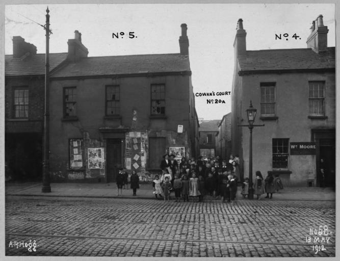 MAKE A MEME View Large Image Hogg for Belfast Corporation Date: 13th May 1912 Description: Stanley Street Area: Grosvenor Road No.s 4, 20A & 5 on plan. South end corner of yard to Conlon Street. Streets in photo: Grosvenor Road, Stanley Street, Cowan's Court. ...