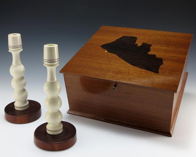 | Keywords: State Gifts Candlesticks.JPG en A pair of ivory candlesticks mounted on natural wood bases Thin black and red lines decorate the top and the bottom of the ivory The candlesticks are enclosed in a wooden presentation box with brass hinges and key The interior of the box has two velvet covered rests for the candlesticks and the cover of the box displays an outline of Liberia done in a darker wood inlay Gift of President William R Tolbert of Liberia ivory 11 25 H x 4 75 Dia Institution Gerald R Ford Presidential Museum http //www fordlibrarymuseum gov/museum/ArtifactCollectionSamples/Catagories/StateGifts/IvoryCandlesticks html Candlesticks Liberia accession number 1987 121 1 credit line Courtesy of the Gerald R Ford Presidential Museum Donation Date November 6 1974 Institution Institution Gerald R Ford Presidential Museum Gerald R Ford Presidential Library and Museum-cooperation PD-USGov Uploaded with UploadWizard Gifts of heads of state in the Gerald R Ford Presidential Museum Candlesticks Ivory objects Relations of Liberia and the United States |
