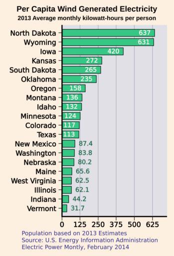 Keywords: State Per Capita Monthly Wind Generation 2013.svg en Bar chart of U S State per capita average monthly wind generation for 2013 2014-04-01 13 49 59 own Aflafla1 Valid SVG Created with Python cc-zero Uploaded with UploadWizard Wind energy statistics of the United States |