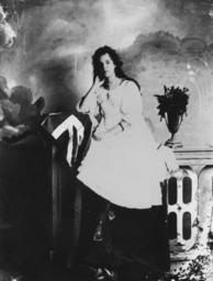| Keywords: StateLibQld 1 101216.jpg en Studio portrait of a teenage girl Cooktown 1900-1910 Studio portrait of a teenage girl Cooktown sitting on a railing She wears a necklace dress armlet shoes and socks A Union Jack drapes the post upon which her elbow sits and a floral arrangement in a vase completes the picture handle 10462/deriv/68162 Item is held by John Oxley Library State Library of Queensland PD-Australia StateLibQld-License People of Cooktown Queensland Black and white photographic portraits of women Women's clothing of Australia Hair fashion in Australia Girls of Australia Railings in Australia |