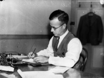 | Keywords: StateLibQld 1 107112 H. J. Harvey of the Trades and Labour Council, 1938.jpg en H J Harvey of the Trades and Labour Council 1938 1938 handle 10462/deriv/92145 Item is held by John Oxley Library State Library of Queensland Contributor s Sunday Truth PD-Australia StateLibQld-License DEFAULTSORT Harvey H Men's clothing of Australia Desks in Australia Offices in Australia Office equipment Trade unionists from Australia 1938 in Australia Black and white photographs Images from Sunday Truth 1938 photographs |