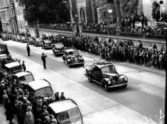 Keywords: StateLibQld 1 108176 Funeral procession for well respected judge, Hugh Macrossan, Brisbane, 1940.jpg en Funeral procession for well respected judge Hugh Macrossan Brisbane 1940 Funeral procession consists of all black cars with an open utility carrying the flower decked coffin Spectators line both sides of the street to watch the passing procession 1940-06-25 handle 10462/deriv/93295 Copied and digitised from an image appearing in the Sunday Truth Contributor s Sunday Truth PD-Australia StateLibQld-License Funerals in Australia Funeral processions in Brisbane Crowds in Australia Vehicles in Australia Politicians of Queensland Funerals in Brisbane 1940 in Brisbane Black and white photographs Hugh Denis Macrossan Images from Sunday Truth |