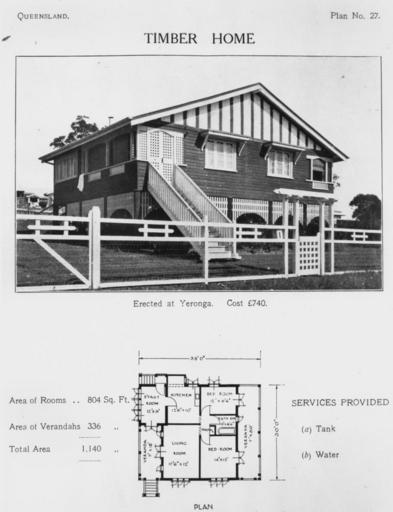 | Keywords: StateLibQld 1 112364 Timber home at Yeronga, Brisbane, 1920-1930.jpg en Timber home at Yeronga Brisbane 1920-1930 The house is viewed from the street over the fence and gate The verandah and area under the house is screened with latticework and ornamental wooden slats A drawing of the floor plan is included Caption Erected at Yeronga Cost £740 between 1920 1930 handle 10462/deriv/132909 Item is held by John Oxley Library State Library of Queensland PD-Australia StateLibQld-License Queenslander architecture Houses in Yeronga Queensland 1920 in Brisbane Black and white photographs Images from The Queenslander Plans of houses in Queensland |
