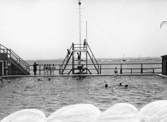 | Keywords: StateLibQld 1 114128 Bathers at the Manly Swimming Baths, Brisbane, Queensland, 1936.jpg supplied with photograph The picture shows swimmers using the diving tower and springboard in the centre of the pool Long wooden benches are arranged along the pool's edge for seating The first settler in the Manly area Thomas Jones built a mansion called Wyvernleigh Wyvernleigh Plantation employed South Sea Islander servants in the house and on the plantation The property is now called Tingalpa House In 1899 when the railway opened the area changed its name to Manly Mary Louise Jones Thomas' mother was a first buyer of bayside land In 1860 she acquired a large area south of Wynnum Creek which was later developed as the Waterloo Bay Estate The area eventually changed from a farming district to a seaside resort and later to a residential district In 1913 the area had a permanent population of only 200 Information taken from Queensland Place Names Board Suburbs and Localities 1936-11-01 handle 10462/deriv/137547 Item is held by John Oxley Library State Library of Queensland Contributor s Queensland Newspapers Pty Ltd PD-Australia StateLibQld-License Outdoor swimming pools in Australia Springboards Sailing yachts of Australia Manly Queensland 1936 in Brisbane Black and white photographs |