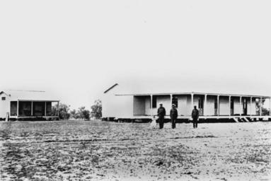 Keywords: StateLibQld 1 122282 Three men and a child at the Surat Police Quarters, ca. 1877.jpg en Three men and a child at the Surat Police Quarters ca 1877 Three men and a child pose in the grounds of the Surat Police Quarters The men appear to be in uniform The verandahs and frontages of the two buildings are clearly visible in this image circa 1877 handle 10462/deriv/3028 Item is held by John Oxley Library State Library of Queensland Contributor s Reckitt Mills PD-Australia StateLibQld-License Police stations in Queensland 1877 in Queensland Black and white photographs Surat Queensland |