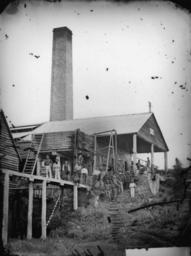 Keywords: StateLibQld 1 134957 Ormiston Sugar Mill, Cleveland district, ca. 1871.jpg en Ormiston Sugar Mill Cleveland district ca 1871 The early part of William Boag's career was spent in Sydney where he was in partnership with portrait photographer Joseph Charles Milligan Images made by Boag are in the collection of the Campbelltown and Airds Historical Society Boag arrived in Queensland in November 1871 He travelled around the south-east along the foreshore of Moreton Bay and the township of Cleveland He then moved into the Logan and Albert area where he captured images of local crushing mills and sugar plantations While at Yatala he took on a partner John Henry Mills and by the end of 1872 both men were in Stanthorpe where they remained for several months producing views of the booming tin-mining settlement In July 1873 after stopping off in Warwick Boag and Mills extended their operations to Mackay where they remained until October 1875 During this time Boag made trips to St Lawrence and Cooktown however his movements after this are difficult to trace It is known that by mid 1876 he was at Copperfield and Clermont and in February 1878 he inserted a notice in the Peak Downs Telegram announcing that he was leaving for the west Then information ceases abruptly It is possible that Boag never reached his destination since his death certificate records that he died in 1878 at an unknown location In the 1850s Captain Louis Hope purchased 800 acres of land at Raby Bay which he named Ormiston after a family estate in Scotland He first attempted to grow cotton then convinced that sugar offered better prospects he started cane-growing By 1863 there were 20 acres under cane at Ormiston plantation and by January 1864 a mill building was under construction to house machinery manufactured by D Cook Co of Glasgow Five men were required to conduct the crushing - three to haul up the cane and two to feed it between the rollers According to one historian 'the color and quality of the sugar produced were inferior and a crowbar had to be used to break the sugar in the crystallizers' but the effort brought Hope fame as the producer of the first commercial sugar in Queensland In 1875 the mill was dismantled after Hope lost a court case over a milling dispute The mill's machinery was offered for sale in 1876 Note the presence of Pacific Islanders in the photograph Louis Hope was the first to employ these labourers when he imported 57 Melanesian workers in 1865 circa 1871 handle 10462/deriv/9220 Item is held by John Oxley Library State Library of Queensland Boag William 1838 -1878 PD-Australia StateLibQld-License Sugar mills in Australia Ladders Vernacular architecture of Australia 1871 in Queensland Black and white photographs Chimneys in Queensland Raby Bay |