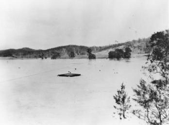 Keywords: StateLibQld 1 136422 Floods of 1951 in the Mount Crosby area, Brisbane Valley.jpg en Floods of 1951 in the Mount Crosby area Brisbane Valley Square feature almost submerged is the top of the intake tower at the Mount Crosby Pumping Station 1951 handle 10462/deriv/10606 Item is held by John Oxley Library State Library of Queensland PD-Australia StateLibQld-License Floods in Queensland Brisbane River 1951 in Queensland Black and white photographs Mount Crosby Queensland Water supply in Brisbane Water intake towers |