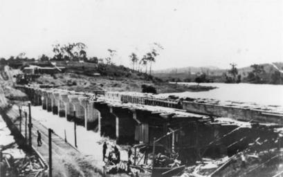 | Keywords: StateLibQld 1 136590 Weir and bridge over the Brisbane River at Mount Crosby, 1926.jpg en Weir and bridge over the Brisbane River at Mount Crosby 1926 1926 handle 10462/deriv/10806 Item is held by John Oxley Library State Library of Queensland PD-Australia StateLibQld-License Bridges in Brisbane Dam construction Brisbane River Mount Crosby Weir Water supply in Brisbane 1926 in Brisbane Black and white photographs of Australia in the 1920s Bridges in Australia photographed in 1926 Weirs in Queensland Images from the State Library of Queensland |