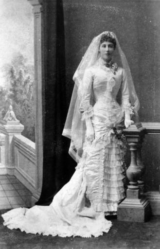 | Keywords: StateLibQld 1 138983 Margaret Murray Murray-Prior.jpg Margaret Murray Murray-Prior is pictured in her wedding dress and veil Her ornate dress had a train ruffles on the bodice and skirt and was draped at the hipline at the front She wore a floral corsage and had a floral headpiece This portrait was taken in the studios of J Deazeley one of Brisbane's leading photographers 1882-03-01 handle 10462/deriv/12143 Item is held by John Oxley Library State Library of Queensland Contributor s J Deazeley PD-Australia StateLibQld-License Unknown photographer XIX century 1882 in Queensland 1882 portrait photographs F 19th-century portrait photographs of standing women at full length 1882 Black and white photographs of women in corset Weddings in Brisbane Corsage jewellery Flowers of Australia Lace in portrait photographs Portraits of Queensland Veils in Australia Wedding dresses in Australia Women's clothing of Australia |