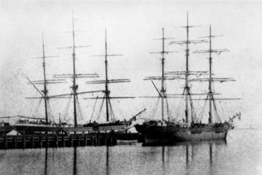 | Keywords: StateLibQld 1 144739 Loch Rannoch (ship).jpg en Two Scotch clippers šLoch Rannoch ˜ built in Glasgow 1868 as iron vessel and šThyatira ˜ built in Aberdeen 1867 as composite clipper at Yarra Street Pier Gelong handle 10462/deriv/23651 Item is held by John Oxley Library State Library of Queensland PD-Australia StateLibQld-License Loch Rannoch ship 1868 Thyatira ship 1867 Ships in Geelong Black and white photographs | ||||