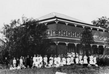 | Keywords: StateLibQld 1 14898 Pupils outside the Emerald Convent in Emerald, ca. 1907.jpg supplied with photograph circa 1907 handle 10462/deriv/146684 Item is held by John Oxley Library State Library of Queensland PD-Australia StateLibQld-License Convents in Australia Students in Australia Children's clothing of Australia Emerald Queensland Roman Catholic Diocese of Rockhampton Black and white photographs Convent schools in Queensland | ||||