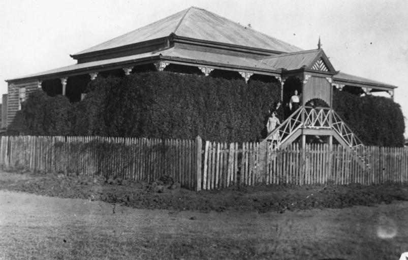 | Keywords: StateLibQld 1 14982 Residence in Emerald, ca. 1918.jpg supplied with photograph circa 1918 handle 10462/deriv/146713 Item is held by John Oxley Library State Library of Queensland PD-Australia StateLibQld-License Picket fences in Queensland Hedges in Australia Houses in Emerald Black and white photographs |