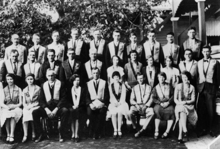 | Keywords: StateLibQld 1 15022 Members of the Emerald chapter of the M.U.I.O.F.F., ca. 1925.jpg en Members of the Emerald chapter of the M U I O F F ca 1925 circa 1925 handle 10462/deriv/132 Item is held by John Oxley Library State Library of Queensland PD-Australia StateLibQld-License Sashes Freemasonry in Australia Emerald Queensland Black and white photographs Friendly societies | ||||
